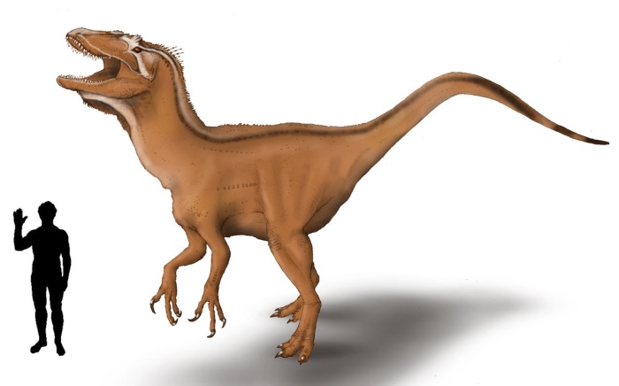 Poseía grandes mandíbulas con dientes curvos señalando hacia el fondo de la boca. Podía dar dentelladas y despedazar a las presas con unos bocados. Su poderosa y pesada cola la mantenía tiesa al correr y a la vez, mantenía el equilibrio de su pesado cuerpo. Poseía afiladas y largas garras en todos sus dígitos. Medía 8 metros de longitud.