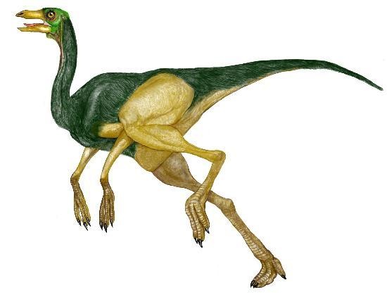Quizá usaba sus tres garras que tenía al final de sus largos dedos para procurarse comida o para escarbar en la tierra en busca de huevos de otros dinosaurios. Las otras tres garras planas de cada pata se aferraban al suelo cuando corría como los tacos de las zapatillas de carreras. A diferencia del avestruz, tenía una larga cola. Esta cola era mucho menos flexible que su elástico cuello, el cual podía dispararse como un muelle para atrapar algunos de sus alimentos. Mantenía la cola tiesa en horizontal al correr. Si corría velozmente por un terreno irregular, la cola le ayudaba a mantener el equilibrio la parte delantera de su cuerpo.