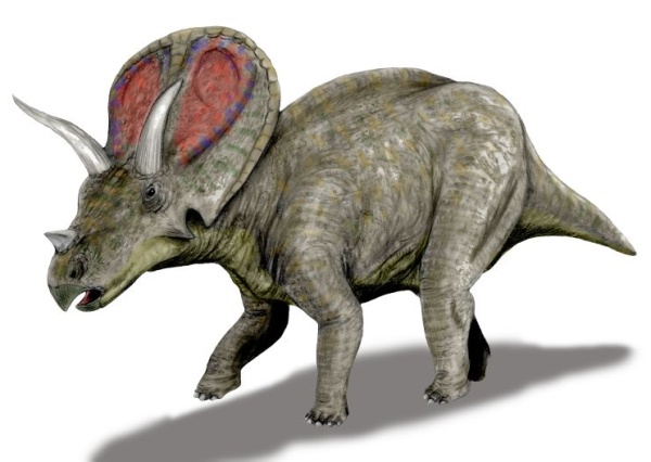 Caminaba a cuatro patas y se alimentaba de plantas bajas. Aunque el cráneo era trece veces mayor que el de una persona, su cerebro era muy pequeño. Pero con su notable placa ósea, grandes cuernos afilados en la frente y otro más pequeño en el hocico, estaba muy bien protegido contra los ataques de los grandes dinosaurios depredadores. Cuando se enfrentaba a un rival, balanceaba su inmensa cabeza de forma amenazante. Después separaba las patas, se plantaba firme en el suelo y, a continuación, ambos dinosaurios luchaban trabando los cuernos de la frente.