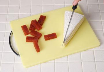 Cortar el membrillo y el queso en rectángulos de 5 x 1,5 cm.