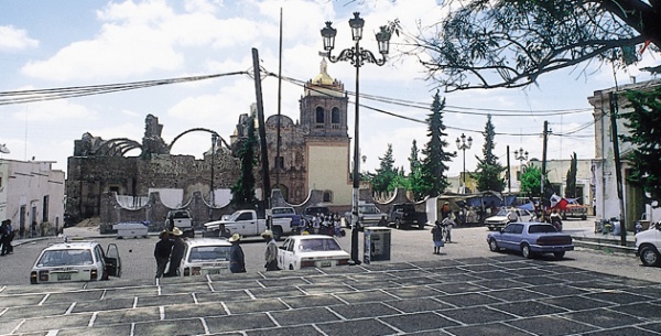 Jardín Miguel Hidalgo. Frente a este espacio se levantan varios de los edificios y monumentos más emblemáticos de la localidad como el Palacio Municipal o, al sur, la torre solitaria del reloj público, obra del siglo XVII, de estilo barroco, características de este portal son las columnas de estilo salomónico.